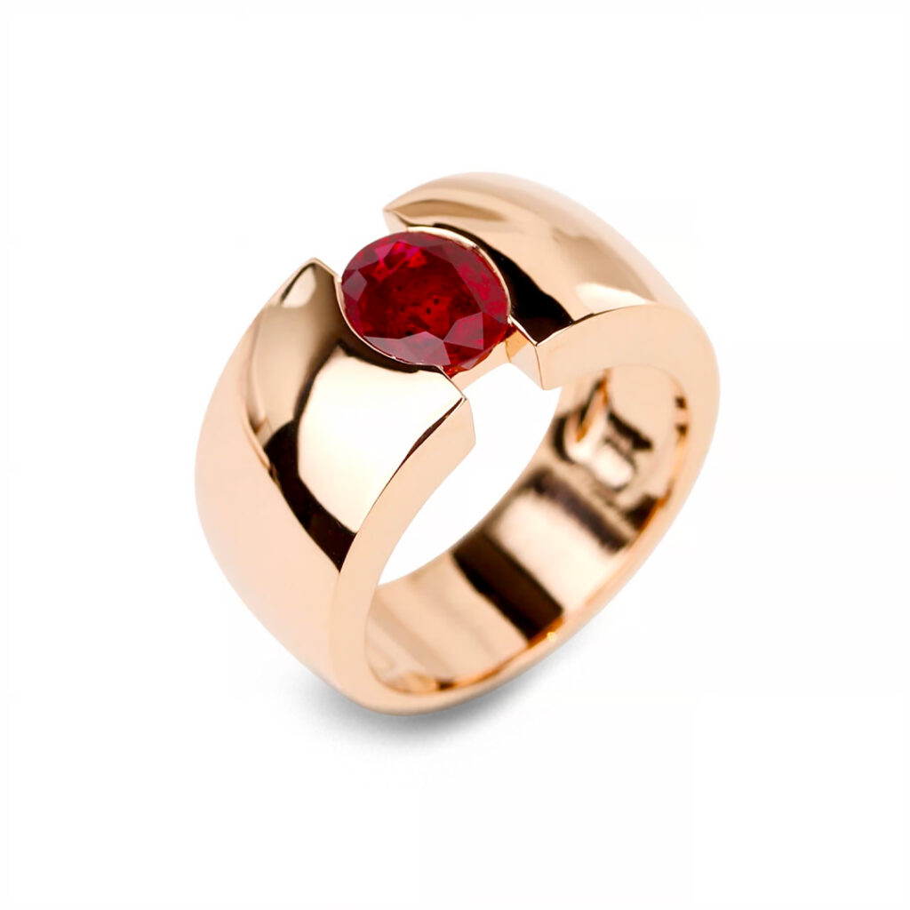 La monture en « gueule de loup » sur deux fils ronds flatte les pierres comme le diamant, le saphir, l’émeraude, le rubis, le spinelle, la tourmaline ou le grenat. Découvrez les réalisations sur-mesure fabriquées dans nos ateliers à Paris lors d’un rendez-vous personnalisé.