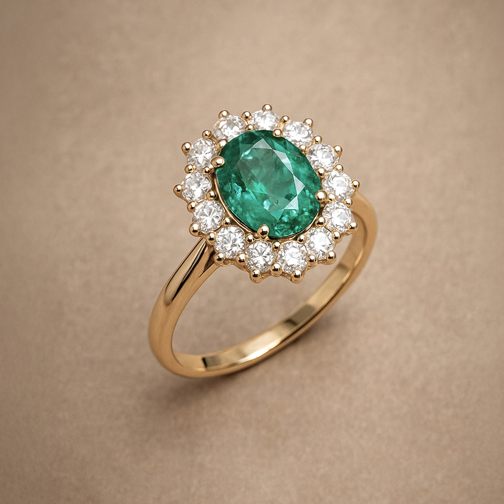 L’émeraude se marie parfaitement avec les diamants. La bague émeraude à encadrement diamants, comme nos bagues Octavia, Perron ou Dubarry, séduira à coup sûr. La bague à entourage diamants, comme notre bague Antoinette, illuminera l’émeraude et son « jardin ». L’anneau habillé de diamants, simple ou multifils, comme sur notre bague Chenonceau, fera scintiller votre bague de mille feux.