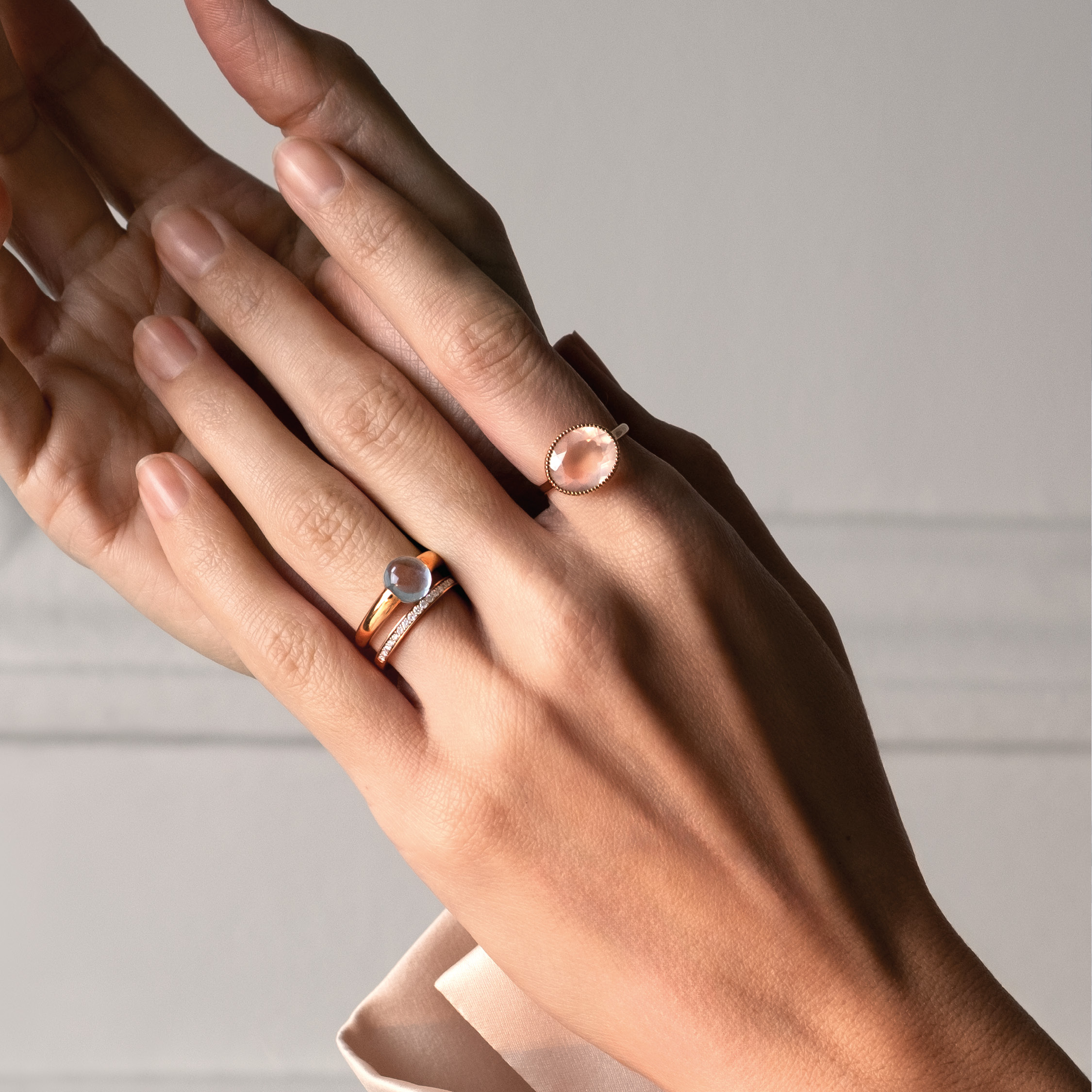 Monté sur de l’or rose, jaune ou blanc, il révèle différentes facettes de sa personnalité : romantique, contemporaine ou intemporelle. Accessible et profondément symbolique, le quartz rose séduit celles et ceux qui recherchent une pierre expressive, loin des codes trop classiques.