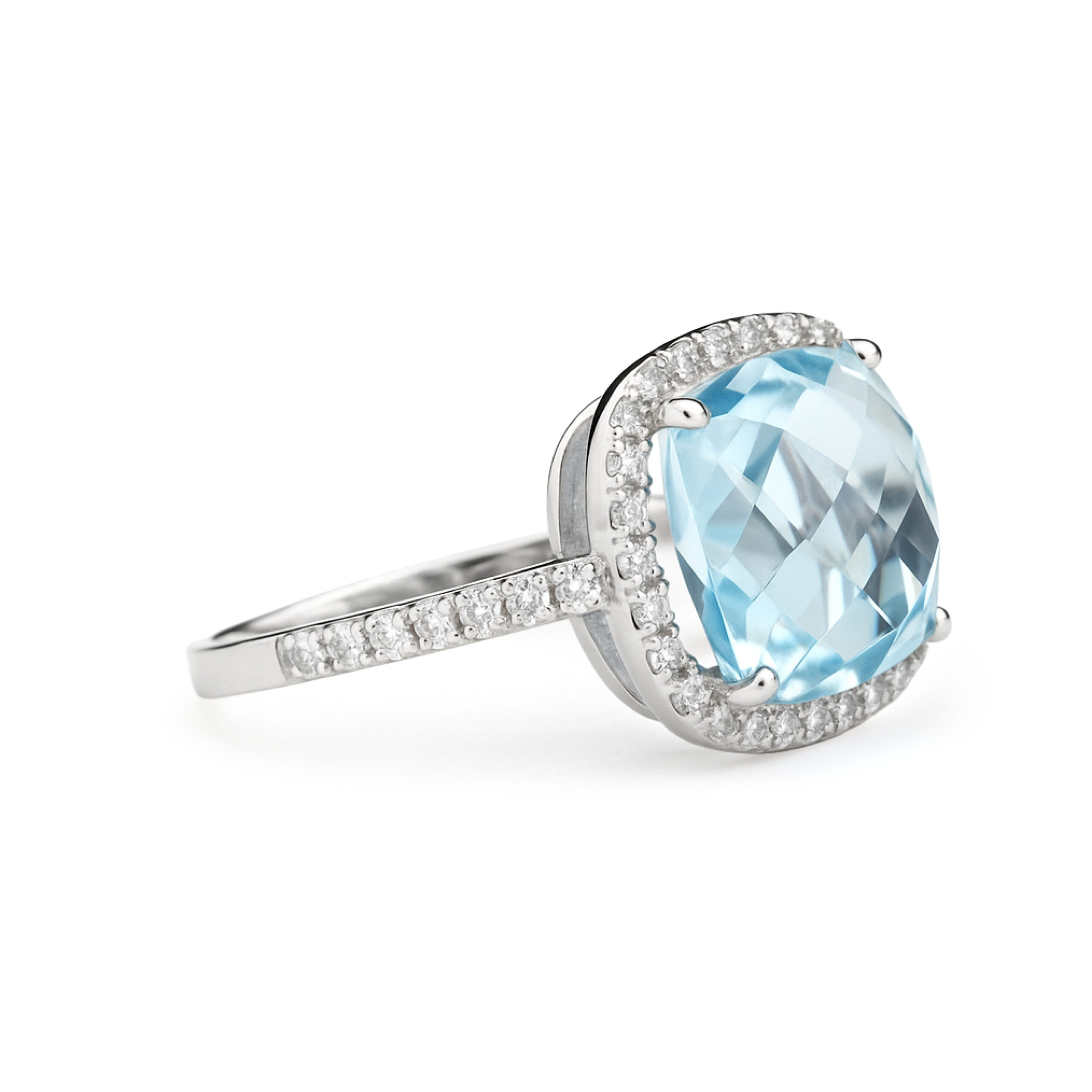 Dernière création de la collection Antoinette, cette bague met à l’honneur la topaze bleue, une pierre à la teinte limpide et lumineuse qui évoque la clarté et la sérénité.