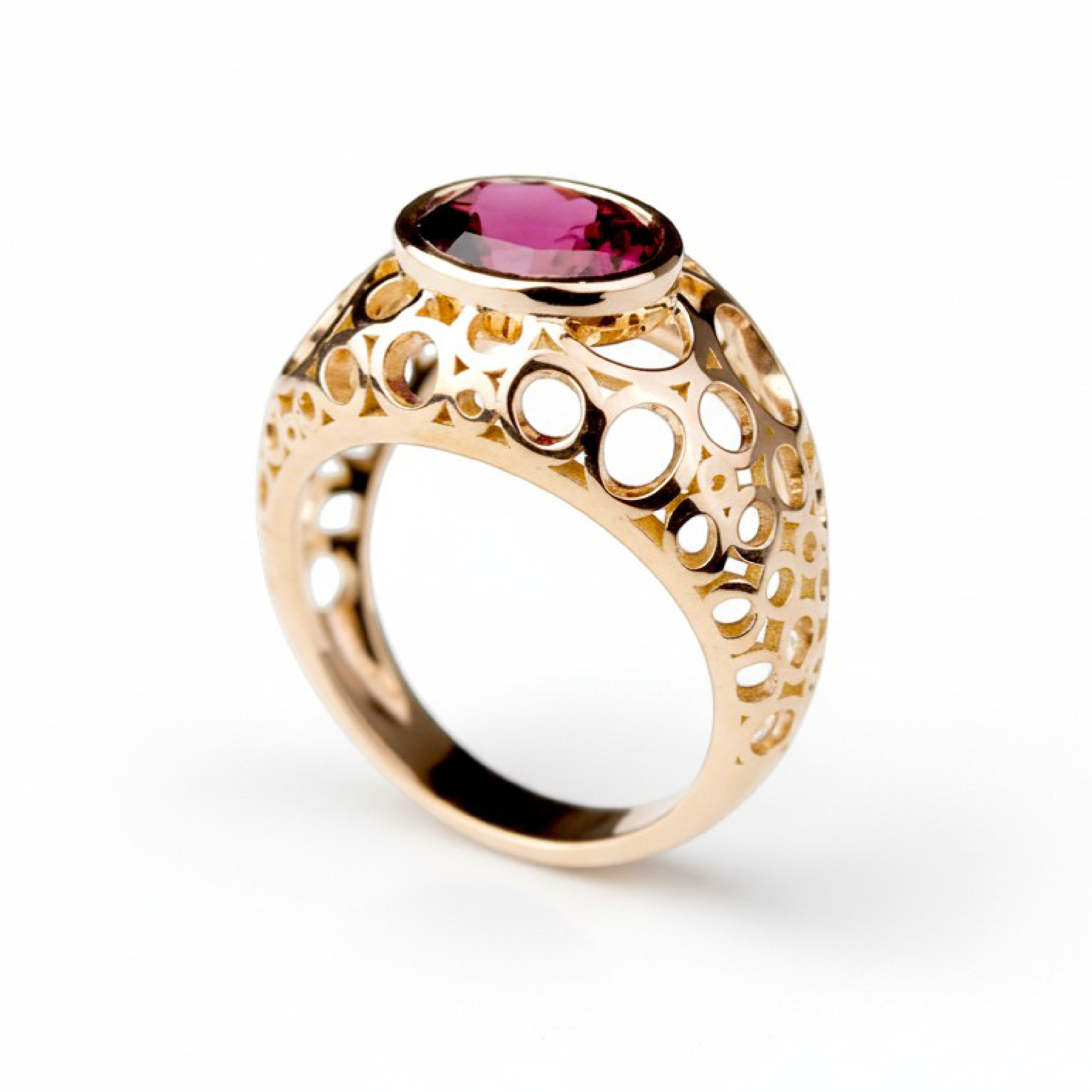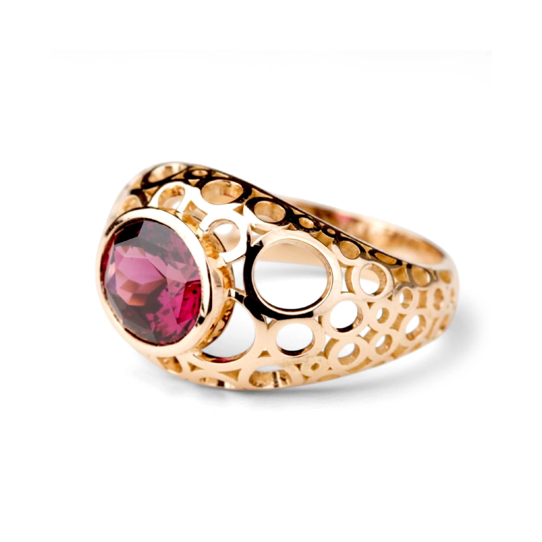 Bague grenat rhodolite jonc ajouré et or rose