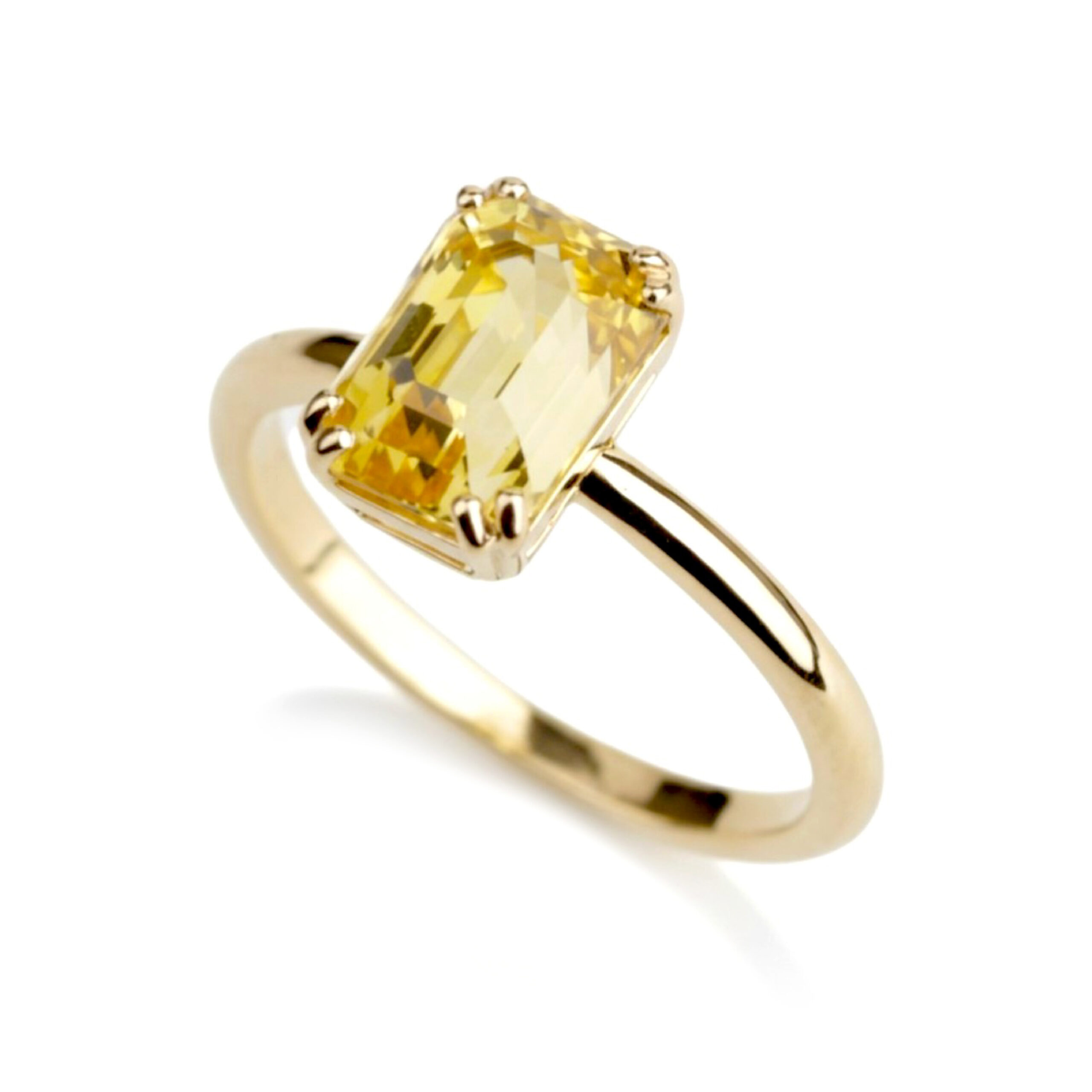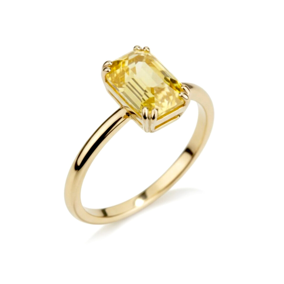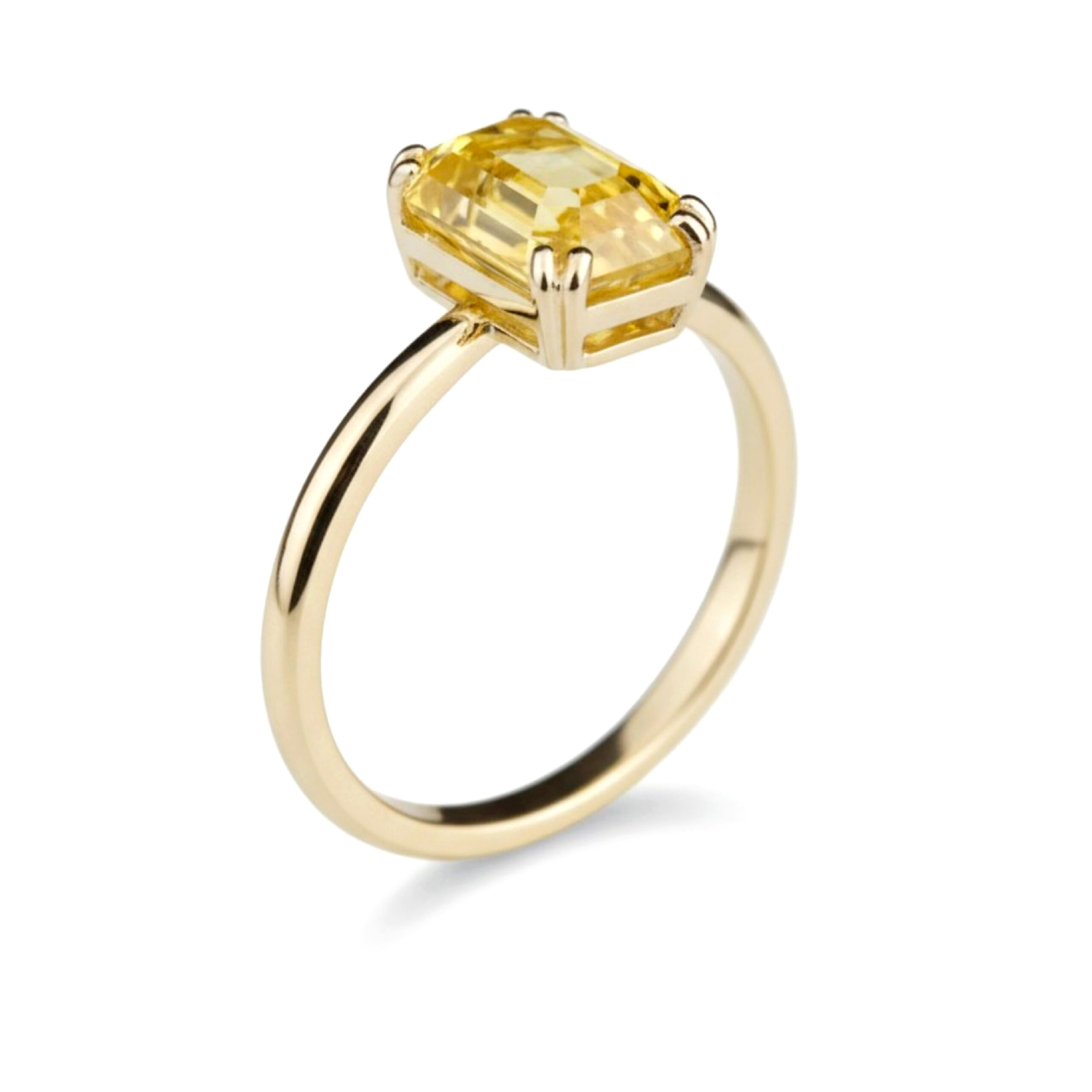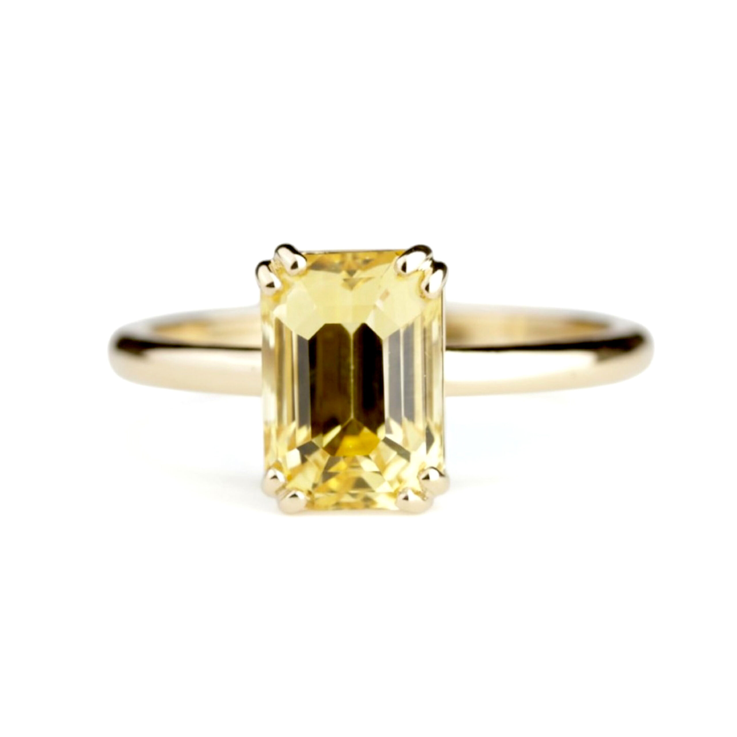 Ici, le saphir jaune est maintenu par un serti simple et aérien, qui révèle pleinement sa couleur, sa profondeur et sa singularité. Réalisée en or 18K, cette bague incarne une élégance intemporelle, à la fois discrète et affirmée. Une création pure, conçue pour celles et ceux qui recherchent un bijou où la pierre devient l’évidence.