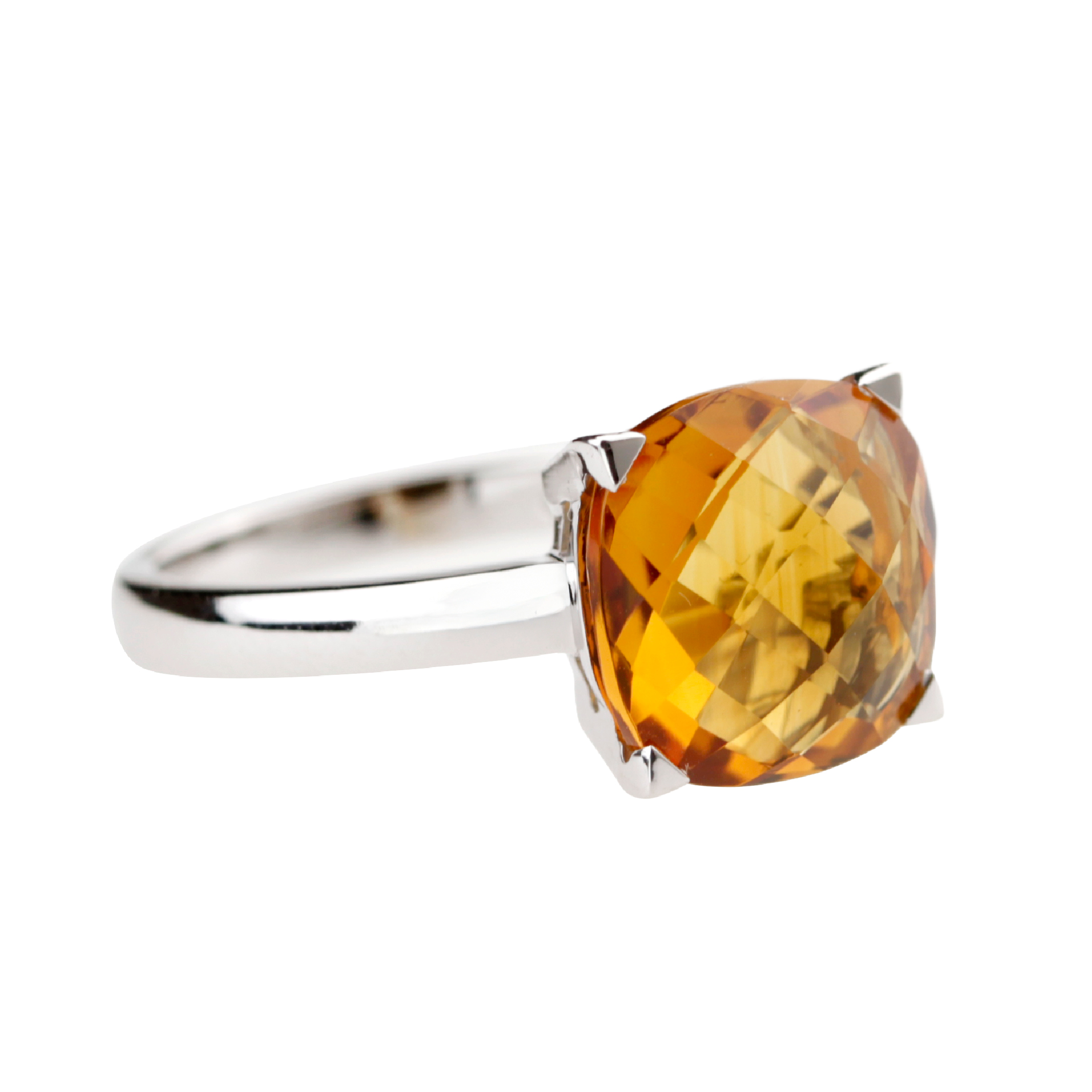 Issue de la collection Poppy Blue, cette bague met en lumière une citrine taillée en briolette, aux reflets dorés et lumineux évoquant la chaleur du soleil. Sa monture épurée souligne la pierre avec élégance, pour un bijou à la fois raffiné et intemporel.